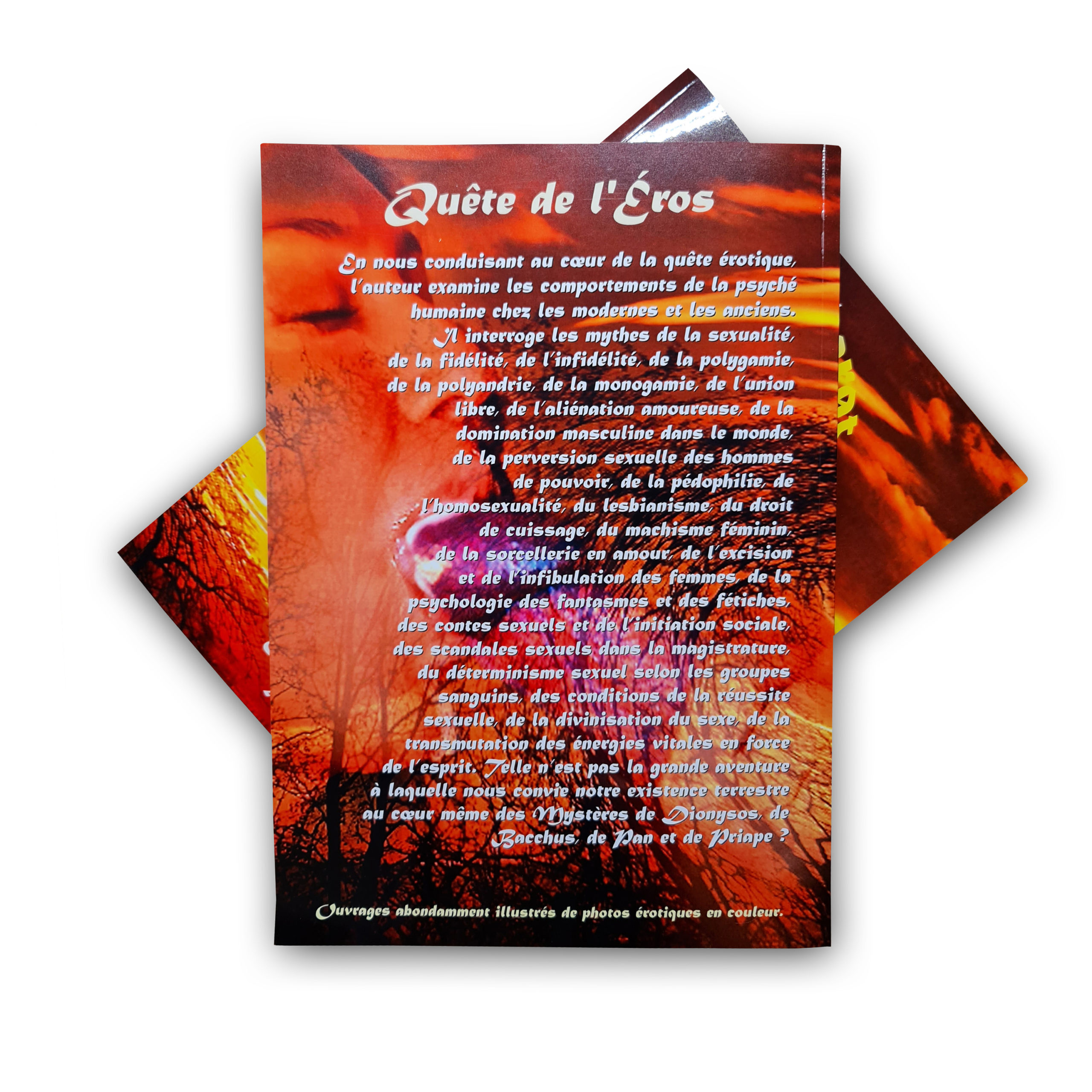 En nous conduisant au cœur de la quête érotique, l’auteur examine les comportements de la psyché humaine chez les modernes et les anciens. Il interroge les mythes de la sexualité, de la fidélité, de l’infidélité, de la polygamie, de la polyandrie, de la monogamie, de l’union libre, de l’aliénation amoureuse, de la domination masculine dans le monde, de la perversion sexuelle des hommes de pouvoir, de la pédophilie, de l’homosexualité, du lesbianisme, du droit de puisage, du machisme féminin, de la sorcellerie en amour, de l’excision et de l’infibulation des femmes, de la psychologie des fantasmes et des fétiches, des contes sexuels et de l’initiation sociale, des scandales sexuels dans la magistrature, du déterminisme sexuel selon les groupes sanguins, des conditions de la réussite sexuelle, de la divinisation du sexe, de la transmutation des énergies vitales en force de l’esprit. Telle n’est pas la grande aventure à laquelle nous convie notre existence terrestre au cœur même des Mystères de Dionysos, de Bacchus, de Pan et de Priape ?