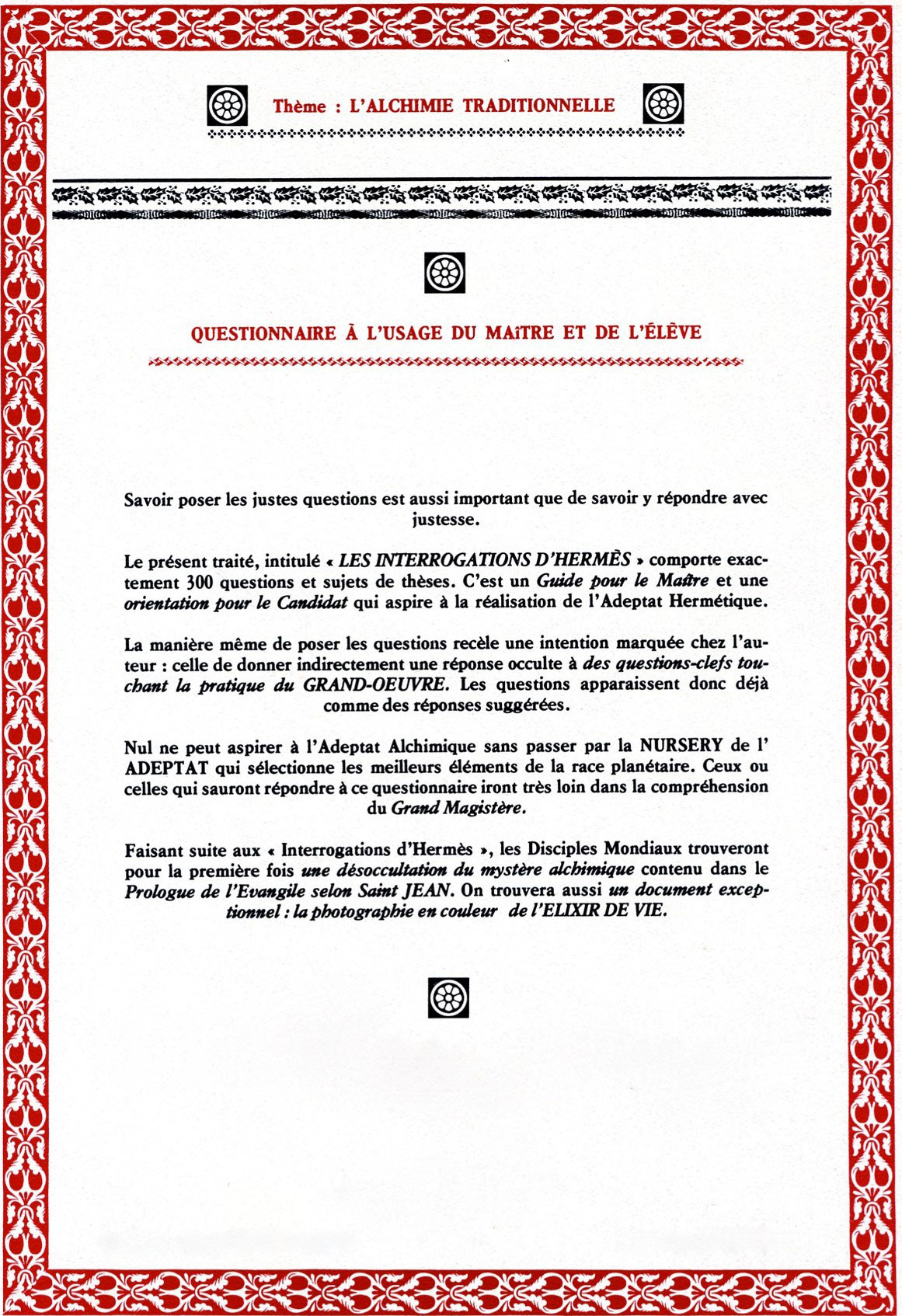 Suivies d’une désoccultation du mystère alchimique contenu dans le Prologue de l’Évangile selon saint Jean, avec photographie en couleur de l’élixir de vie.